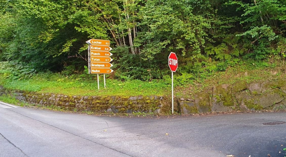 - Oltrepassare l'abitato di Frassilongo di circa 1 Km e poi svoltare a destra per immettersi in una piccola strada comunale tutta asfaltata seguendo per "Gruabpoun"